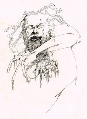 When I was seventeen, I played Renfield, the fly eating minion, in a production of Dracula. I drew this picture during rehearsals. Years later, I found it while going through some old work and decided to steal the idea for a new painting.